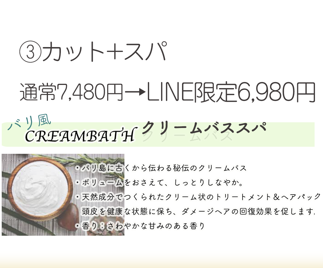 カットとバリ風クリームバススパ付きのお得なセットメニューです!